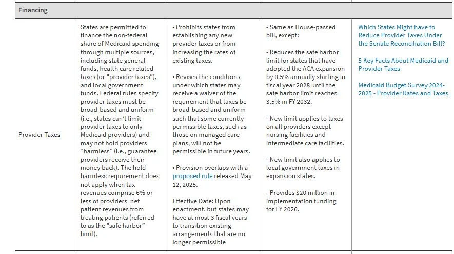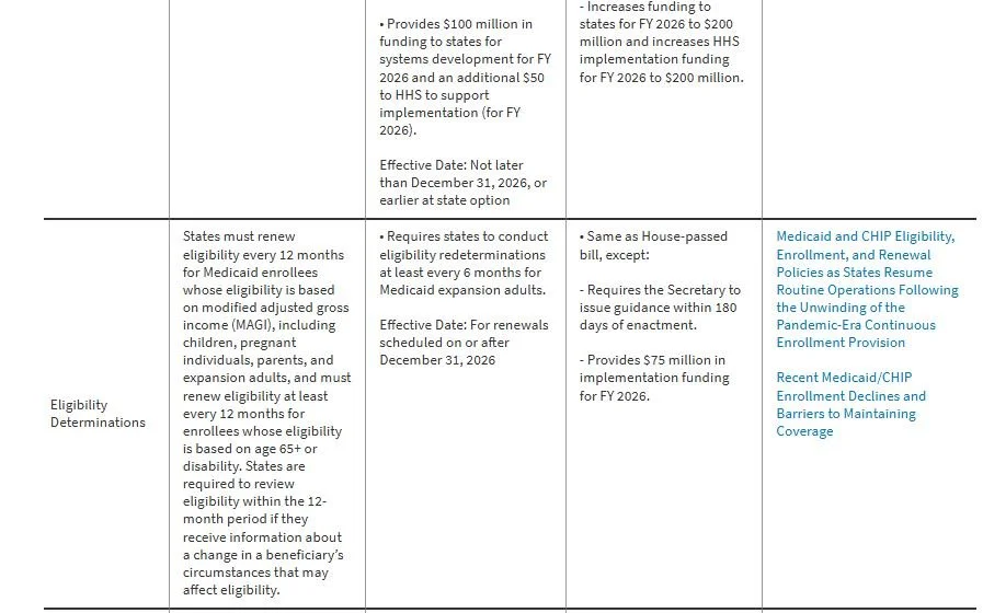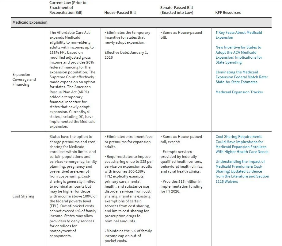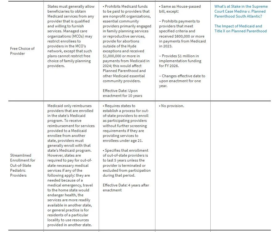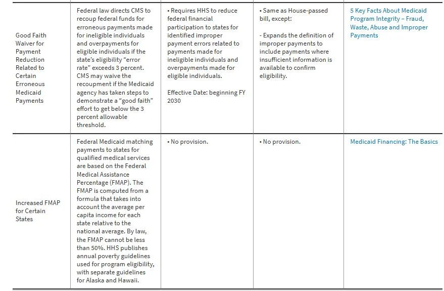 On July 3, the House passed the same version of the budget reconciliation bill passed by the Senate on July 1. On July 4, President Trump signed the legislation into law . This summary describes the health care provisions in the law (described as the Senate-passed bill) in four categories: Medicaid, the Affordable Care Act, Medicare and Health Savings Accounts (HSAs). It also compares the provisions to a earlier draft of the bill passed by the House on May 22.