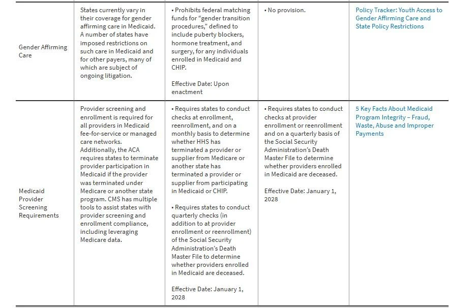 Health Provisions in the 2025 Federal Budget Reconciliation Bill