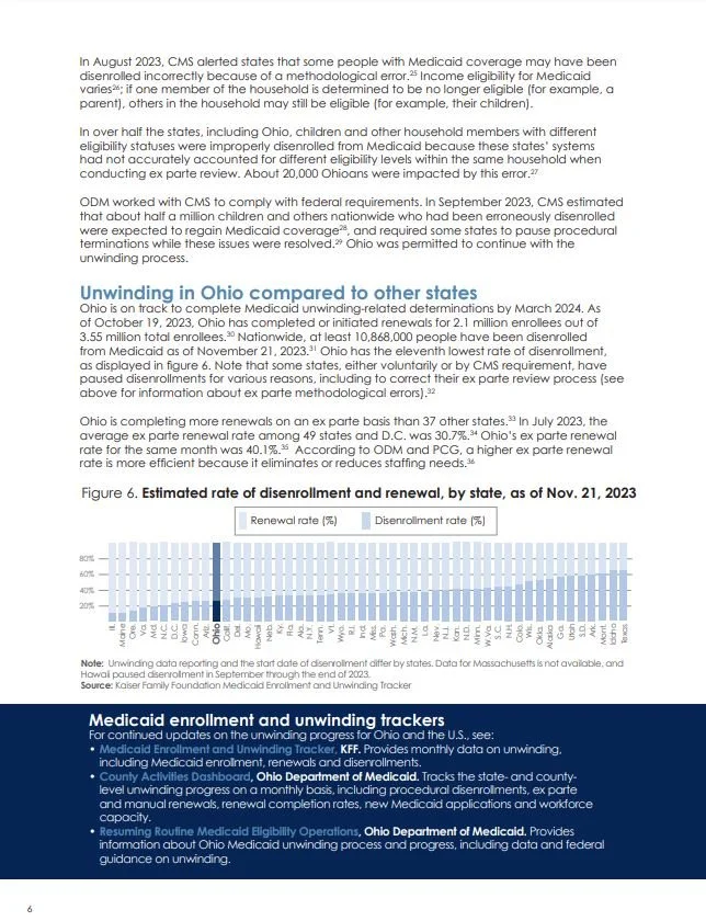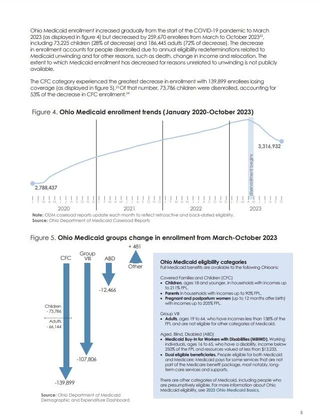Ohio Medicaid Basics Update: Unwinding of the Medicaid Continuous Enrollment Provision State-Specific News Dec 14 Written By Sharon Daugherty By Health Policy Institute of Ohio / December 2023 Sharon Daugherty